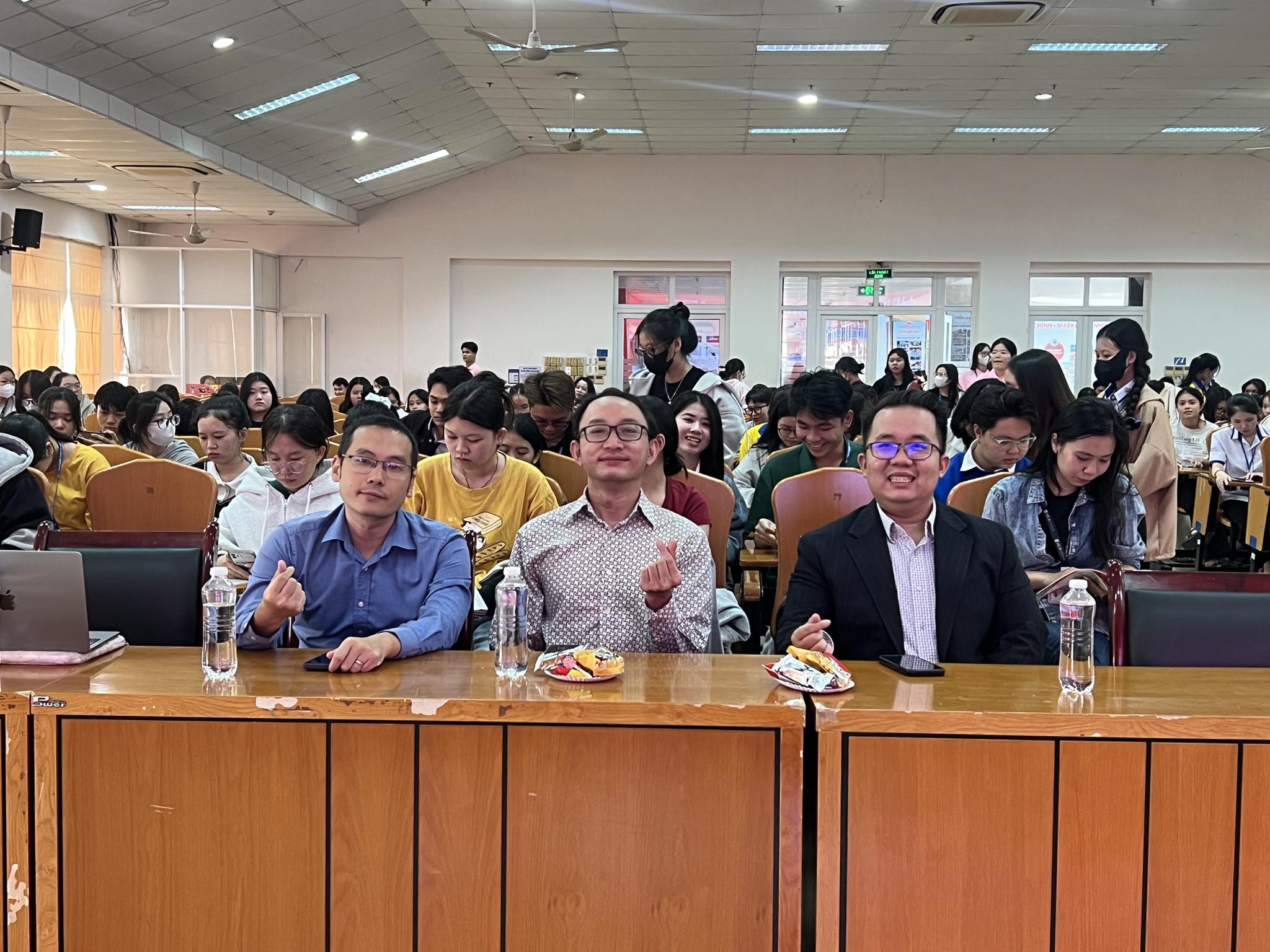 Trong buổi talkshow, sinh viên Trường Đại học Tài chính – Marketing đã có cơ hội giao lưu cùng thầy Minh Trần, giảng viên kỳ cựu tại DOL. Thầy sở hữu thành tích 9.0 IELTS Overall, Cử nhân RMIT và Temple University (USA), chứng chỉ giảng dạy tiếng Anh TEFL, cùng nền tảng học chuyên Anh PTNK TP.HCM. Với kinh nghiệm giảng dạy dày dặn và phong cách gần gũi, thầy đã truyền tải nhiều kinh nghiệm quý báu cho các bạn trẻ.