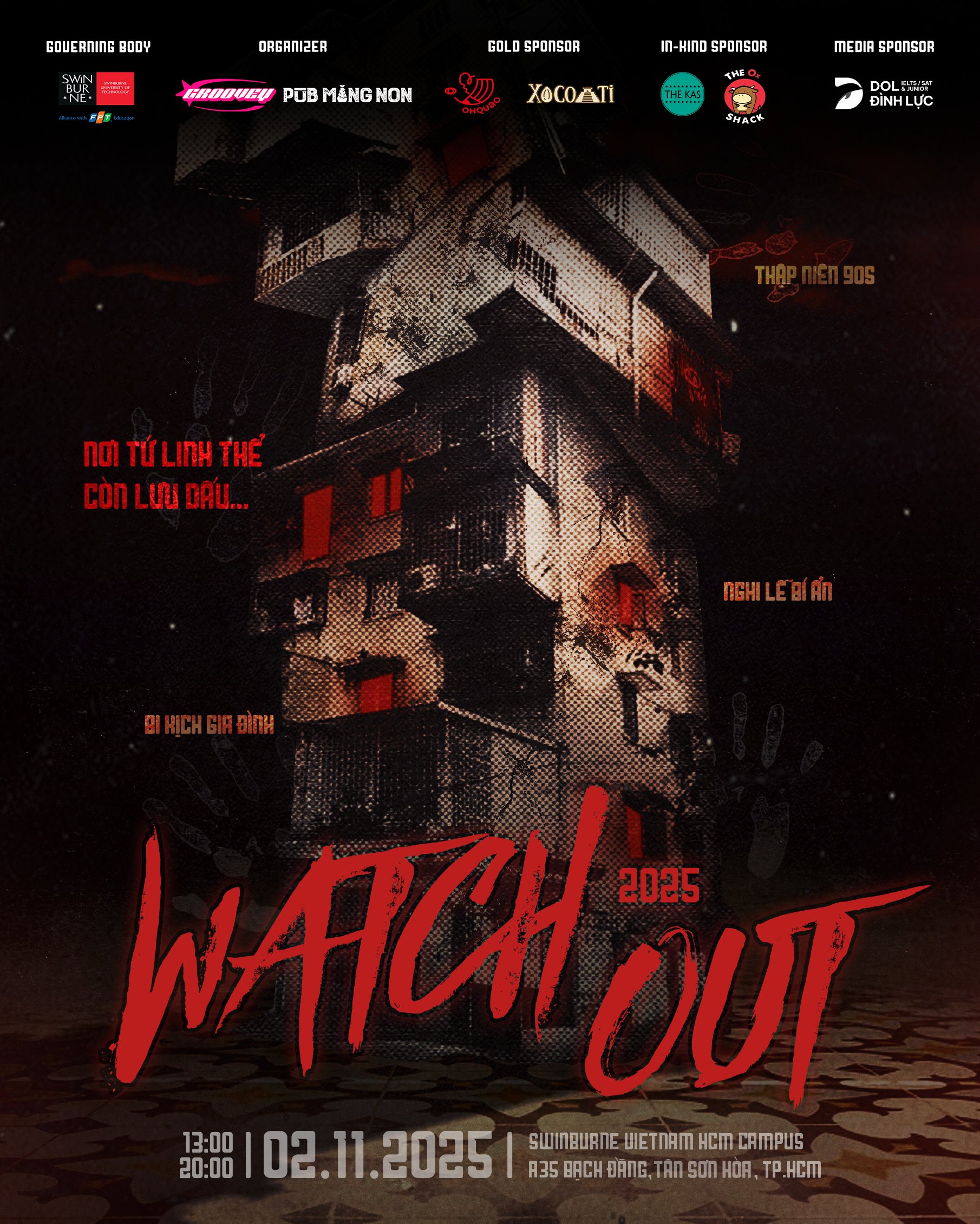 WATCH OUT 2025 không chỉ là một ngày hội giải trí nhân dịp Halloween, mà còn là chuỗi hoạt động kết hợp giữa trải nghiệm – kết nối – sáng tạo, được thiết kế bởi chính các bạn sinh viên Swinburne.