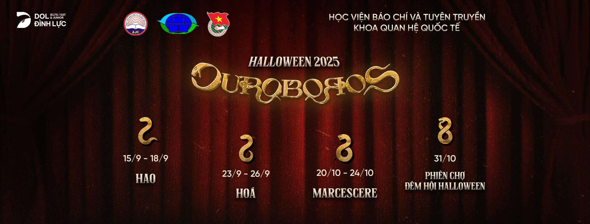 Halloween là sự kiện thường niên của khoa Quan hệ quốc tế, Học viện Báo chí và Tuyên truyền. Đóng vai trò “mở đường” cho đêm đại nhạc hội, chuỗi sự kiện đồng hành đã trở thành điểm nhấn không thể thiếu trong mỗi mùa Halloween. Tại đây, các bạn sinh viên có thể thử sức tham gia những thử thách thú vị từ Ban Tổ chức (BTC) dưới hai hình thức trực tuyến và trực tiếp.