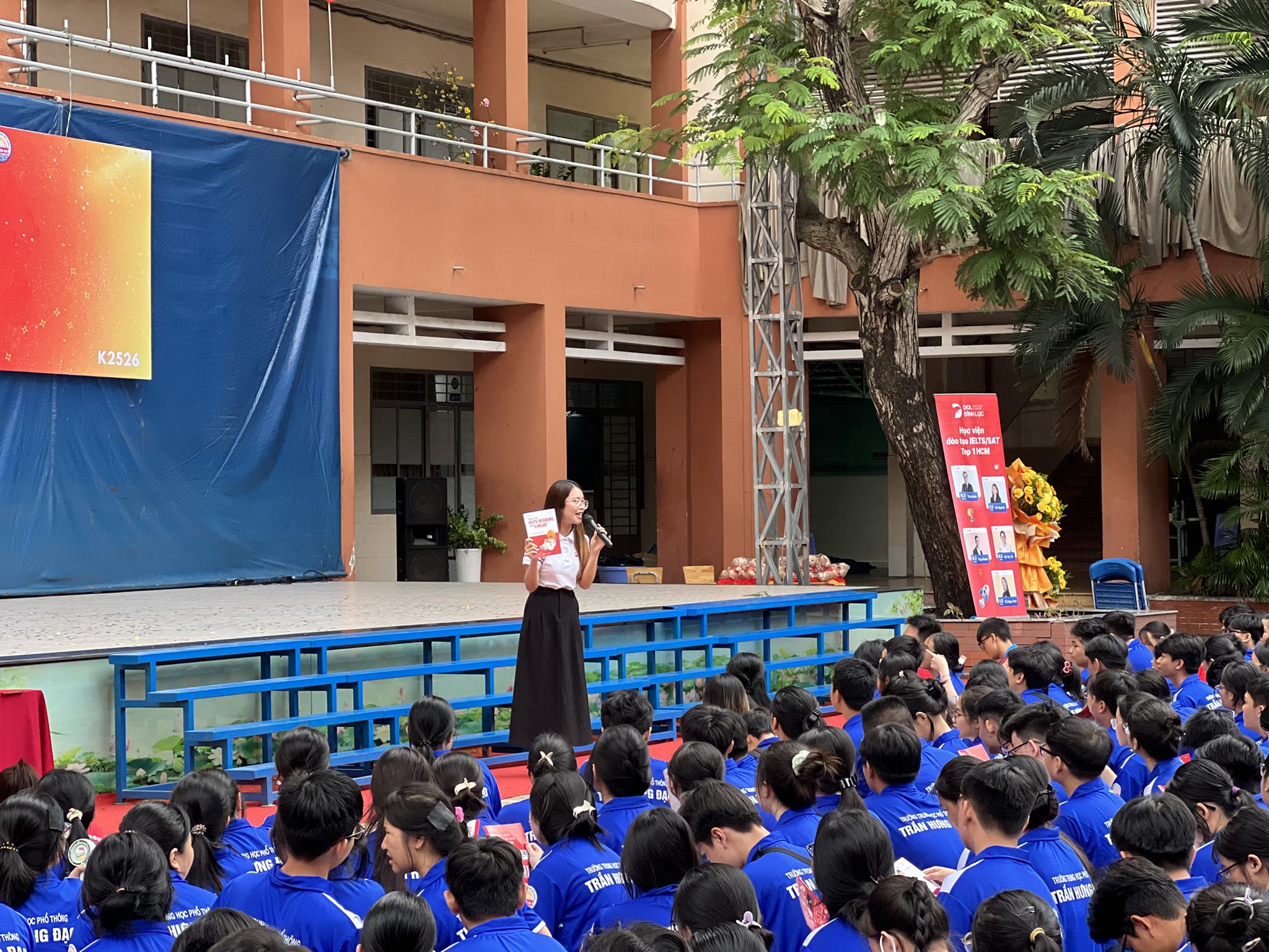 Tại buổi giao lưu, bằng kinh nghiệm giảng dạy nhiều năm của mình, cô Ngọc Anh đã chia sẻ đến với các bạn học sinh trường THPT Trần Hưng Đạo những lỗi sai “cố hữu” của người Việt thường gặp khi ôn luyện IELTS, từ đó cô đã hướng dẫn các bạn cách áp dụng triệt để phương pháp học tiếng Anh tư duy Linearthinking vào 4 kỹ năng Nghe - Nói - Đọc - Viết để đạt được hiệu quả tốt nhất, tiết kiệm tối đa thời gian- công sức ôn luyện.
