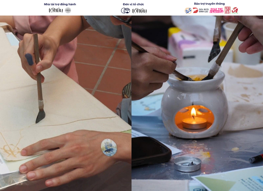 Không chỉ dừng lại ở việc chiêm ngưỡng, workshop nhuộm chàm - vẽ sáp ong tạo ra một không gian độc đáo giúp người tham gia trực tiếp trải nghiệm toàn bộ quy trình nhuộm chàm tự nhiên, cảm nhận hương chàm đặc trưng và tự tay vẽ hoa văn bằng sáp ong – một kỹ thuật truyền thống đòi hỏi sự tỉ mỉ và tinh tế.