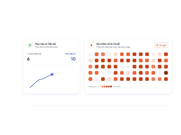 6. 🎯 Lập mục tiêu điểm số: Học sinh có thể thiết lập band hiện tại và mục tiêu điểm số mong muốn, từ đó có cảm giác rõ ràng hơn về đích đến của quá trình ôn tập. Việc có mục tiêu cụ thể sẽ giúp quá trình luyện đề bớt mơ hồ và dễ duy trì động lực hơn.