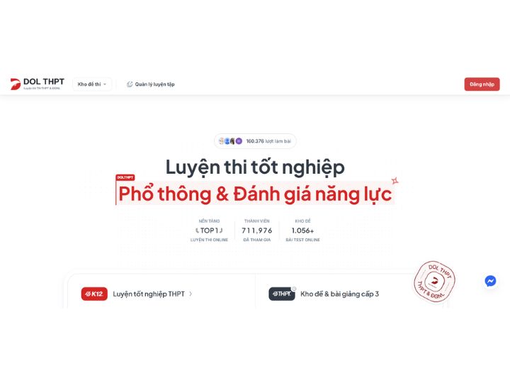 DOL THPT - Trang web ôn thi ĐGNL & ĐGTD miễn phí nổi bật với đề online và trải nghiệm làm bài thực chiến