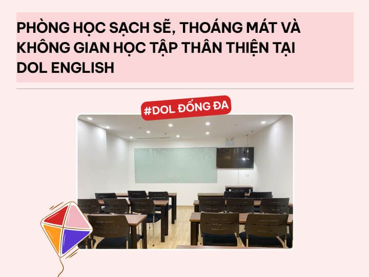 Cơ sở vật chất hiện đại, tiện nghi và môi trường học tập thoải mái, thân thiện. DOL luôn chú trọng tạo điều kiện tốt nhất để học viên phát huy tối đa khả năng của mình.