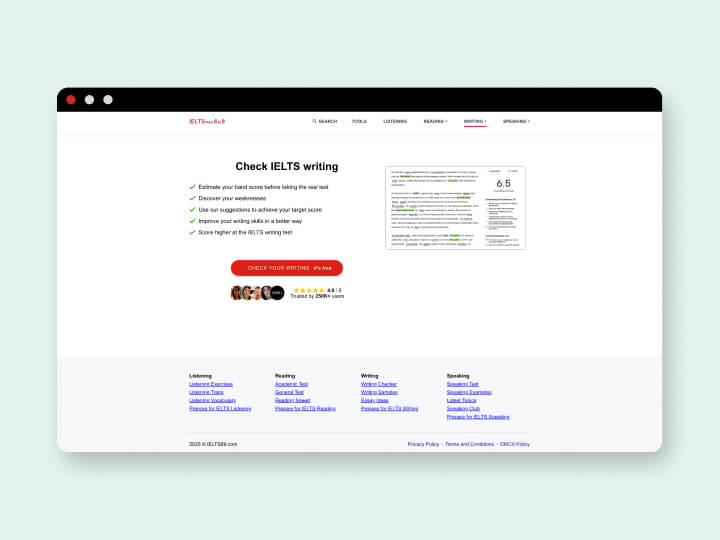 IELTS From 6 to 9 là website chuyên về luyện thi IELTS Writing, đặc biệt hỗ trợ người học đánh giá và cải thiện bài viết thông qua hệ thống chấm bài miễn phí kết hợp với AI. Dù không phải sản phẩm từ đơn vị tổ chức thi chính thức, nền tảng vẫn được đánh giá cao nhờ khả năng phản hồi rõ ràng, chi tiết, sát thực tế thi.