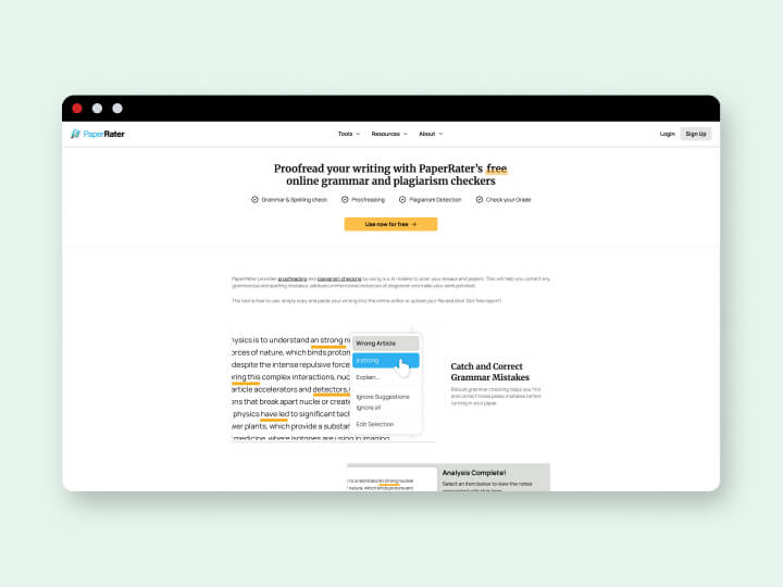 Tích hợp các tính năng hữu ích khác: Paraphrase tool (giúp viết lại câu), AI detector, Plagiarism Checker (kiểm tra đạo văn) giúp người học hoàn thiện bài viết không chỉ về ngữ pháp mà còn về học thuật.