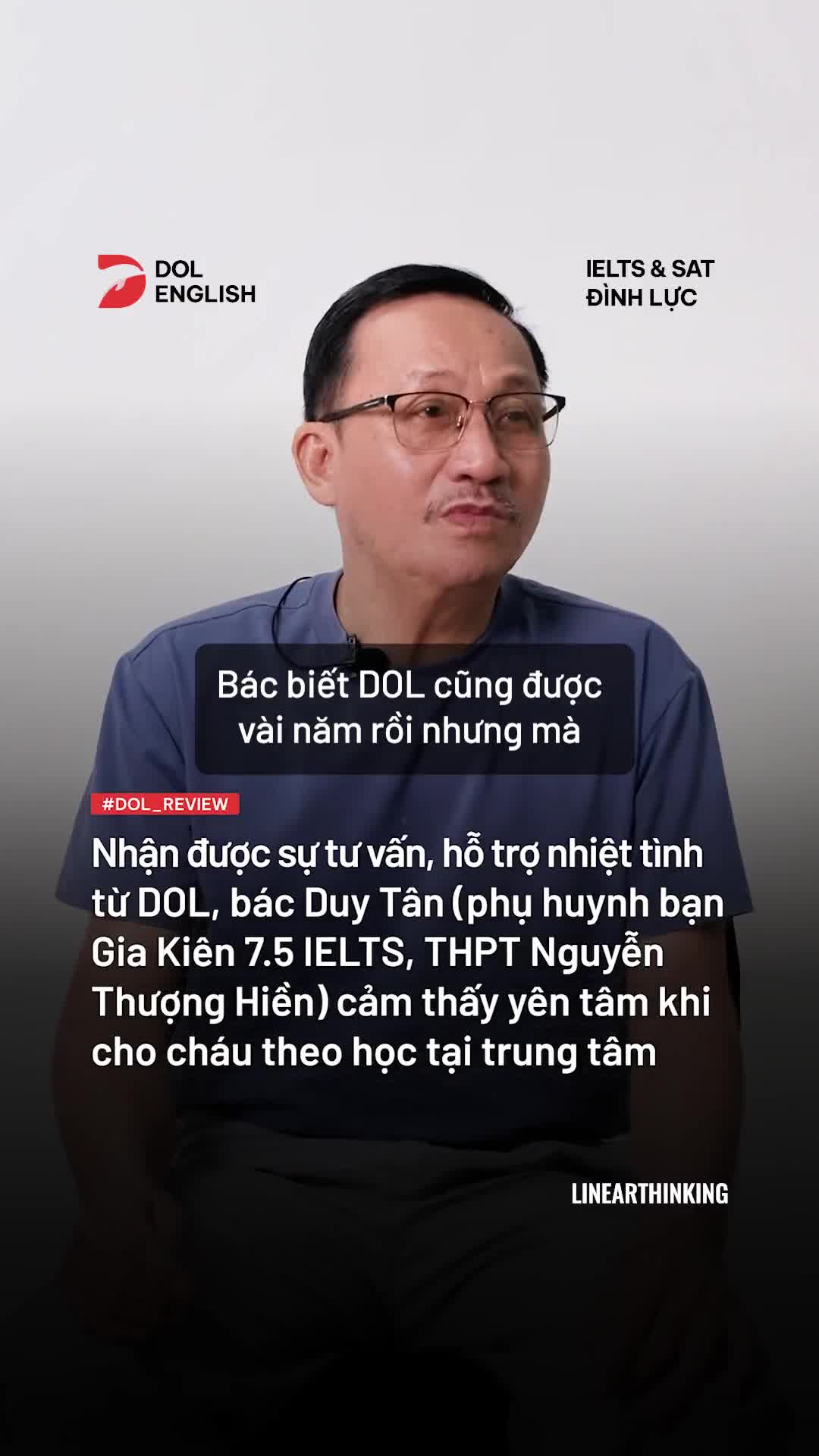 Em đã học tại DOL English một thời gian và thật sự ấn tượng với phương pháp LinearThinking. Nhờ có phương pháp Speak in Structure, em biết cách triển khai ý theo bố cục rõ ràng, mạch lạc thay vì nói rời rạc như trước. Thầy cô giảng dạy dễ hiểu và luôn tạo không khí thoải mái nên em học không bị áp lực. Ngoài ra, hệ thống SuperLMS có nhiều bài tập cập nhật thường xuyên, giúp em luyện thêm và theo dõi tiến độ học tập của mình. #dolenglish #linearthinking